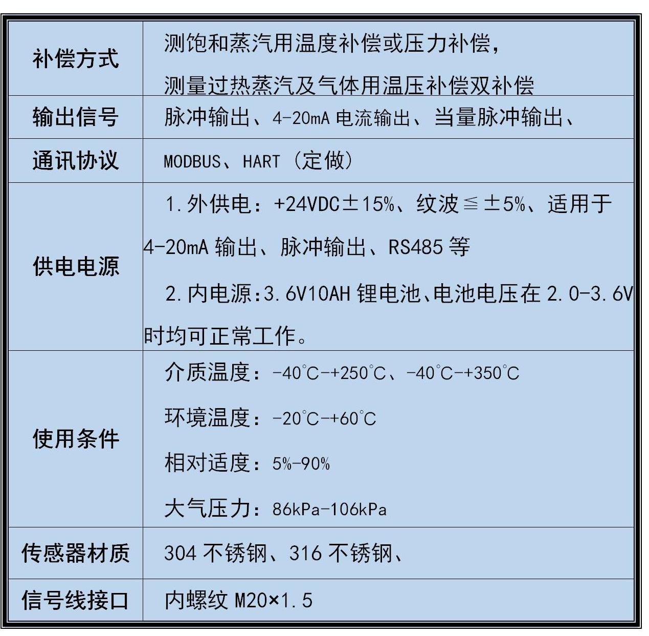1. 渦街流量計具體適合工況參數(shù)見渦街流量計說明書