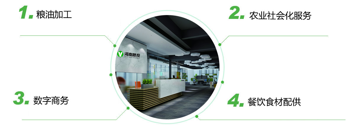 “四輔”:即以“糧油加工”、“農(nóng)業(yè)社會化服務”、“數(shù)字商務”、“食材配供”為輔助業(yè)務。