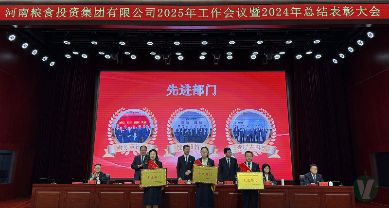 瀏覽次數:10563次4月16日,河南糧投集團2025年工作會暨2024年度總結表彰大會在農投國際報告廳隆重召開,會議全面回顧了集團過去一年的發展成就,對先進集體和先進工作者進行了表彰,對2025年重點工作進行了安排部署。黨委書記、董事長王剛出席會議并講話,集團領導班子成員、本部全體職工,子公司領導班子、外部董事,2024年度先進工作者共160人參加會議。黨委副書記、紀委書記李在良主持會議。